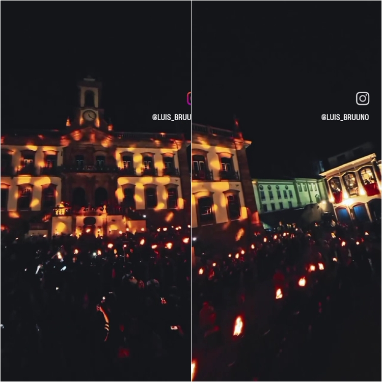 brilho de centenas de tochas e o som ritmado